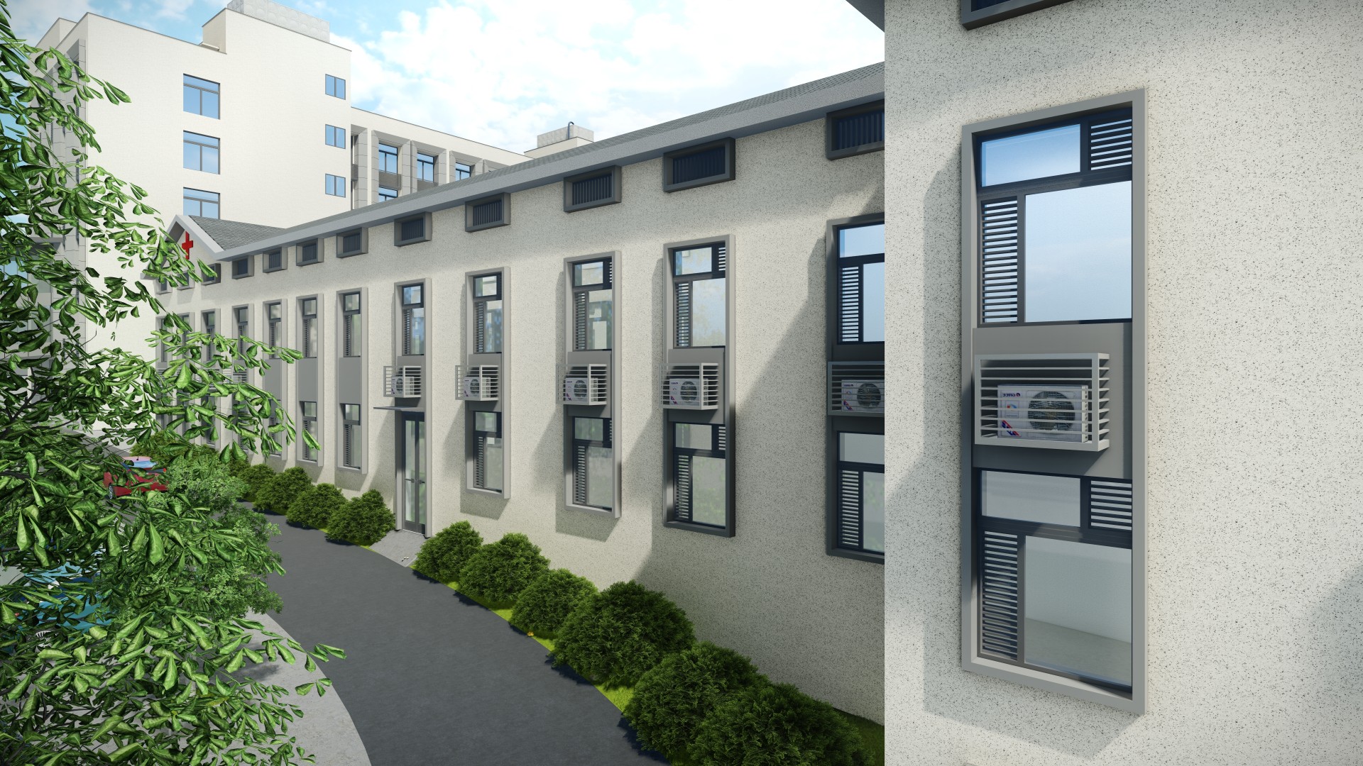 項(xiàng)目概況:醫(yī)院4棟外墻藝術(shù)漆